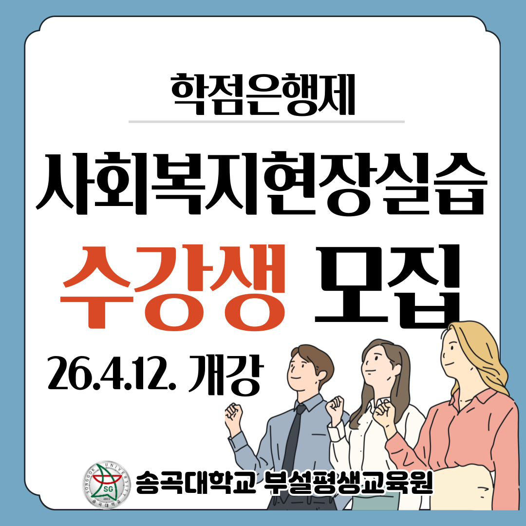 - 2026년 5차 송곡대학교 학점은행제 사회복지현장실습 수강생 모집 2026.03.23